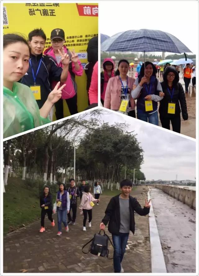 到達起點的時候,已經是人山人海了,盡管天上下著雨,卻絲毫不影響大家挑戰的決心,小伙伴們迅速加入到徒步大軍之中。