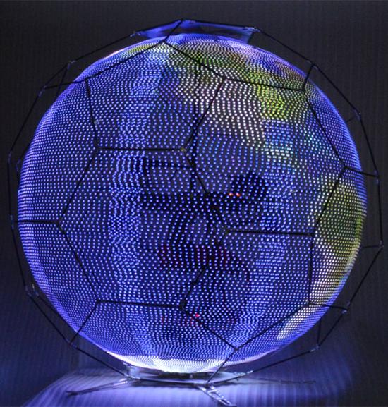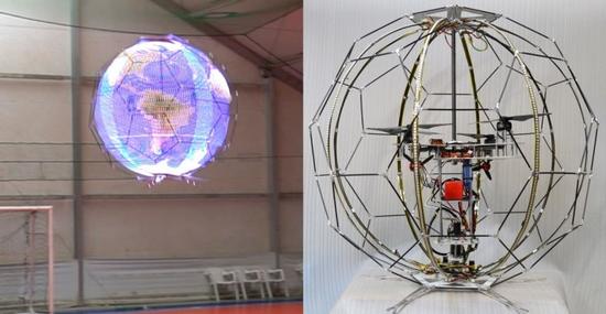 球形框架的直徑約為88厘米(約34.5英寸),整個裝有無人機的裝置重量僅為3.4千克。LED顯示屏的分辨率為144×136,里面是一個從底部突出的雙臂無人機。