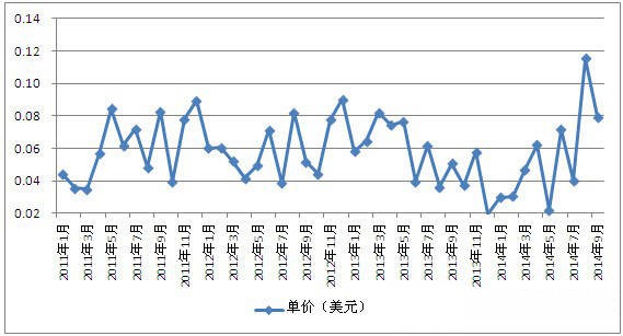 2011-2014.9我國對俄羅斯LED器件(發光二極管)出口單價變化