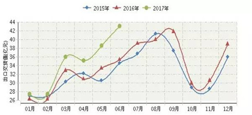 ? 2017年廣東照明行業連續三年月度出口交貨值對比