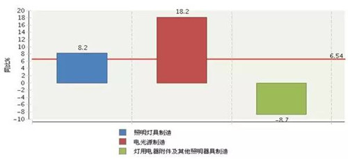 ? 2017年1~6月廣東照明行業累計出口交貨值行業小類同比增長情況