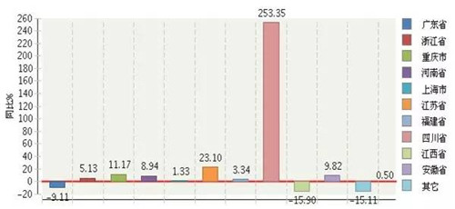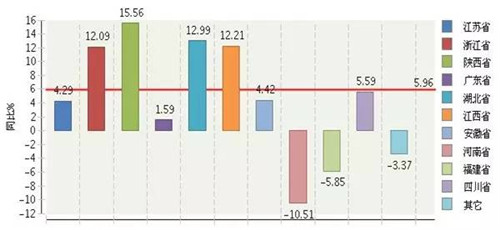 ? 2017年1~6月全國電光源行業累計產量主要地區同比增長情況