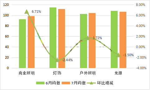 商業(yè)照明系列7月均數(shù)為98.75點,較6月上漲6.71%;