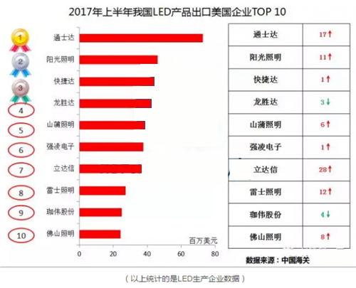 ? 當前,中美已經互為大貿易伙伴國,凸顯兩國經貿關系深入發展到一個新的階段,兩國人民都從中受益良多。本期大家就跟著1°姐的視角看一看2017年上半年我國LED照明產品出口美國的情況。