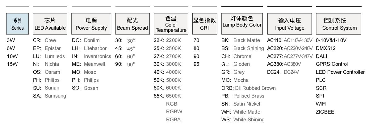 可選配光 | 30/40 | 30/40 | 30/40 | 30/40 | 30/40 | 30/40 |