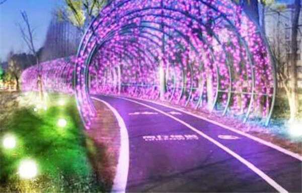 ? 此次改造的路燈不止拘泥于單調的黃白色,彩色投光燈的引入,讓綠道和兩邊的樹木呈現(xiàn)不同顏色,營造如夢如幻般的感覺。此外,彩色投光燈大的特點就是能讓燈光的顏色根據(jù)四季變化依次更替為昡綠、夏藍、秋黃、冬白,產(chǎn)生不同的顏色效果。