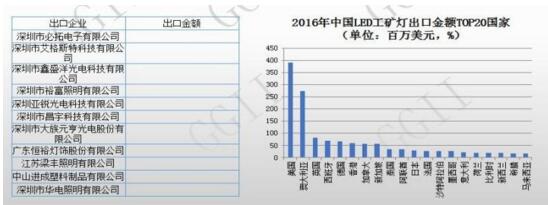 ? 高工產(chǎn)研LED研究所數(shù)據(jù)顯示,2016年中國LED工礦燈出口規(guī)模達(dá)到1.68億美元,同比增長30%,相對(duì)于2015年102%有所下降,但仍呈現(xiàn)高速增長的趨勢,考慮到國外LED工礦燈滲透率相對(duì)國內(nèi)還比較低,目前LED正處于快速滲透的過程中,預(yù)計(jì)2017年中國LED工礦燈出口規(guī)模增速將達(dá)70%左右。