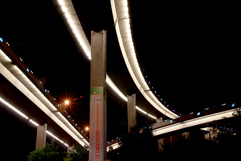 光的流動,燈的藝術與優美的橋身構建出一個有機的整體,在燈光的渲染下,使北園立交橋成為一個城市夜景建設中的一個亮點,它不再僅僅是一座橋,更成為濟南的一條大動脈,承載著城市的活力與精神,引導人們不停奮發向上,積極進取。