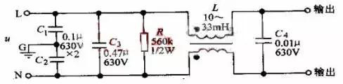 LED電源一般采用簡易式單級EMI濾波器,主要包括共模扼流圈和濾波電容。