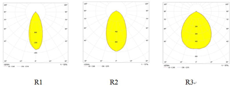 配光曲線呈蝙蝠翼形,并且按光線再道路分布的長(zhǎng)短,合理設(shè)計(jì)配光光強(qiáng),大大提升了道路照明的均勻度;根據(jù)路寬及燈距,選配不同的光源系統(tǒng),使照明效果更加完美。
