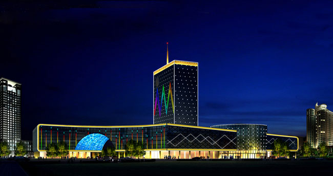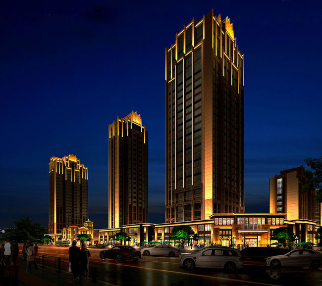 內透光照明適用于玻璃幕墻,因為玻璃吸光和投光采取外打光時無法打亮樓體形狀,像這類樓體亮化一般采用的是內透光的照明方式,利用在室內安裝燈具,透過玻璃向外投光,光帶支架照明、燈光直接向外照明等等,燈具布置點多且分散,在窗口的上檐設置燈具,燈具的內外兩側均設有遮擋板,燈具能夠進行良好的隱蔽安裝,是一種眩光干擾非常小的照明方法。